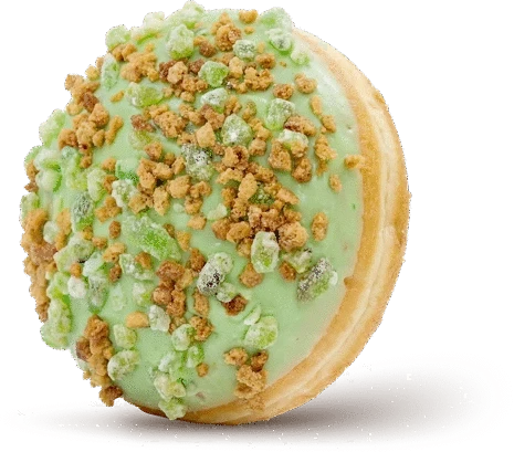 Пончик с начинкой творожный крем, украшен сублимированным киви.