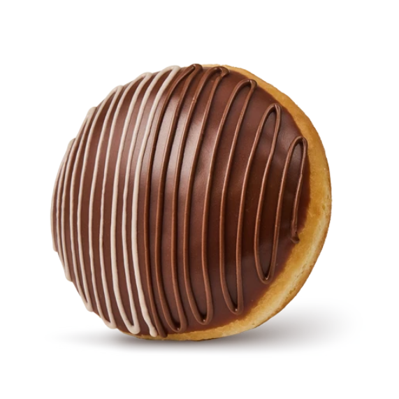 Пончик с начинкой из шоколадно-ореховой пасты, украшен шоколадной глазурью